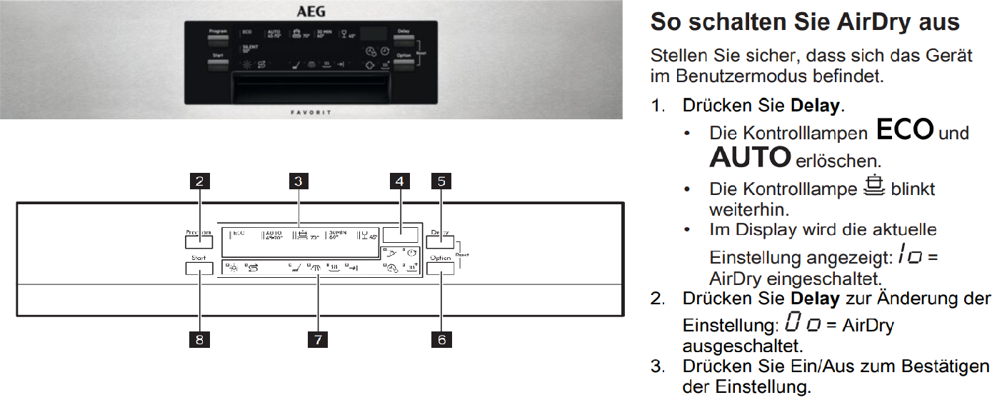 AirDry-Funktion bei der Spülmaschine deaktivieren