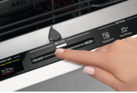 - Das Gerät muss sich im Programmwahlmodus befinden. Bei den meisten Geschirrspülern wird das Programm P1 oder Eco angezeigt.