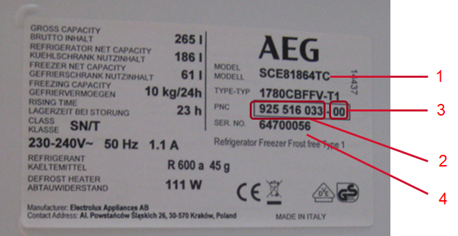 Diese Informationen finden Sie auf dem Typenschild des Geräts.