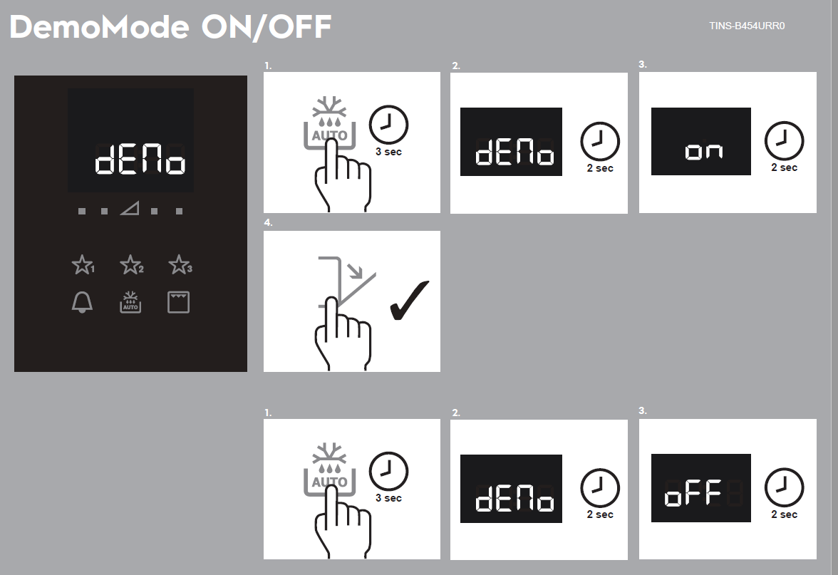 - Demo im Display bedeutet, dass der DemoMode eingeschaltet ist. Das Gerät heizt nicht, obwohl sich