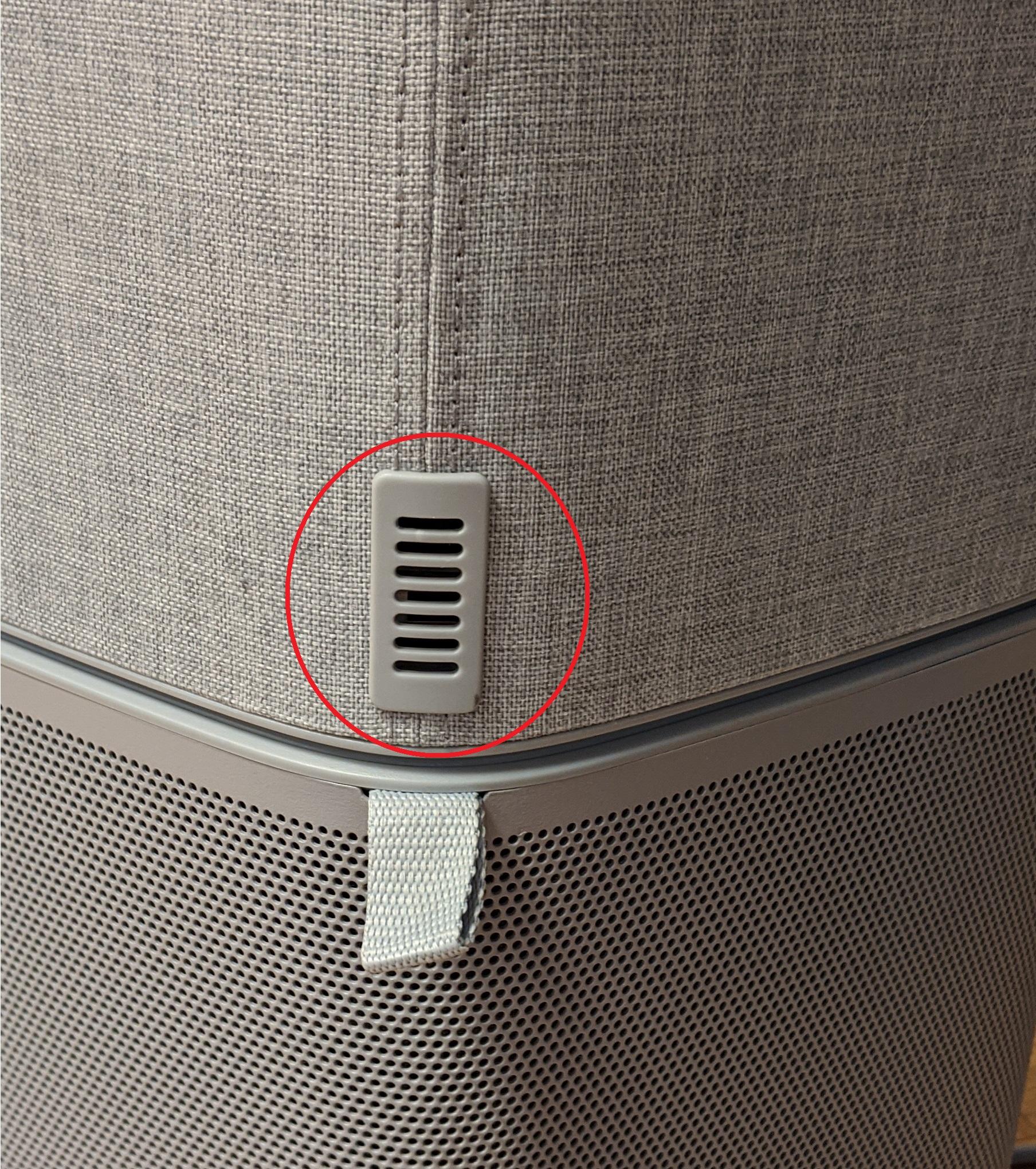 - Wir empfehlen, das Sensorfenster (auf der Rückseite des Geräts über dem Stoffgriff zum Öffnen der Filterabdeckung) jeden Monat abzusaugen - bei Bedarf, je nachdem wie schmutzig die Luft ist, die durch die Sensoren zirkuliert, auch häufiger.