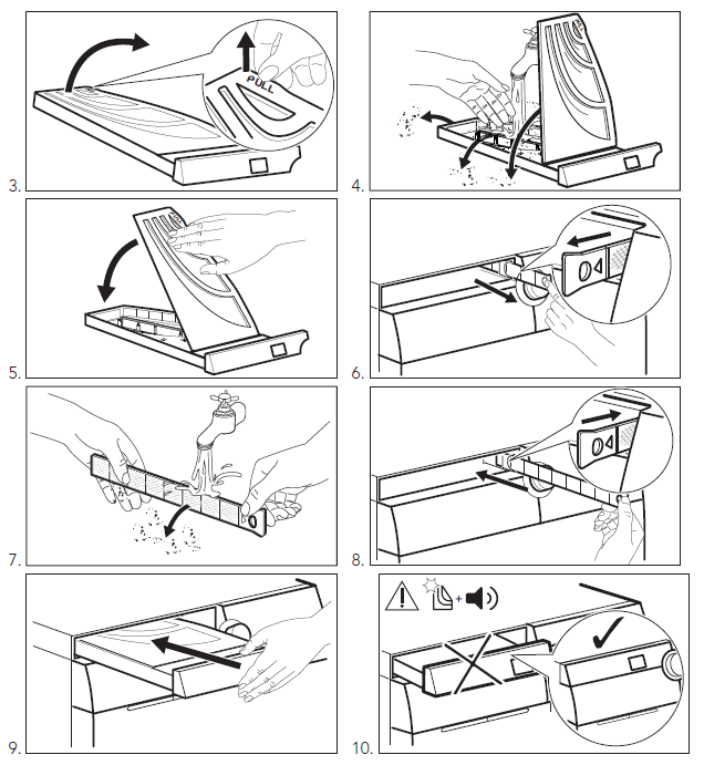 - Um ein optimales Trocknungsergebnis zu erreichen, reinigen Sie die Luftfilter regelmäßig mit warmem Wasser und trocknen Sie sie anschließend mit einem Handtuch ab.