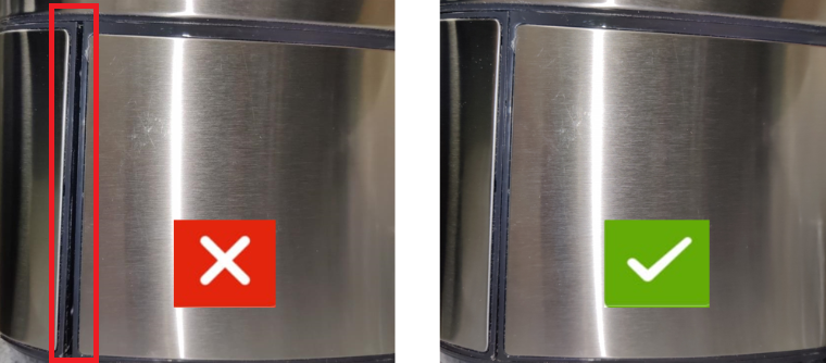 - Der Spalt zwischen Korb und Gehäuse muss geschlossen sein.