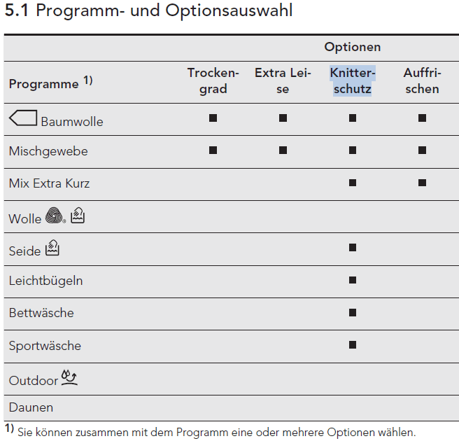 1. Am Ende des Trockenprogramms schließt sich bei vielen Programmen die Knitterschutzphase automatisch an.