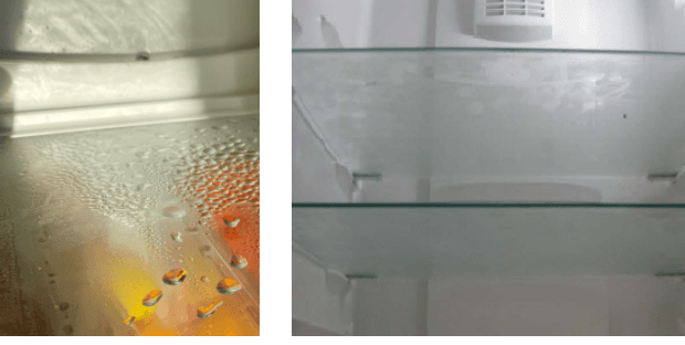 - Lagern Sie beispielsweise viel Gemüse wie grüner Salat im Kühlschrank, steigt die Feuchtigkeit im Kühlschrank und Wassertropfen bilden sich verstärkt, vor allem unter der Glasabdeckung des Gemüse Fach.