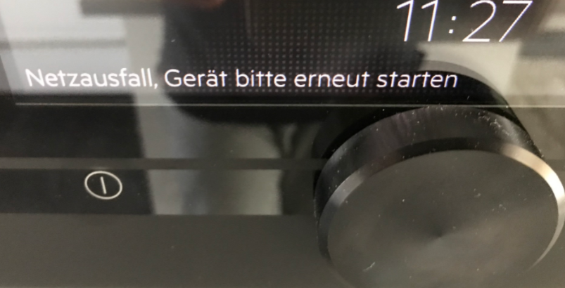 - Im Display des Backofens erscheint die Mitteilung "Netzausfall, Gerät bitte erneut starten"