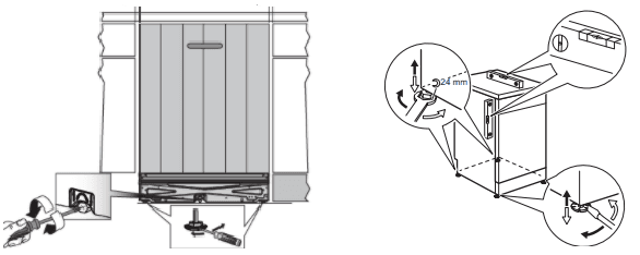 - Ein Einbau-Geschirrspüler kann über die Füße in der Höhe verstellt werden.