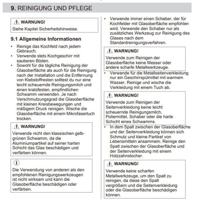 - Reinigungshinweise für verfärbte Glasplatten / Keramikgläser