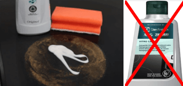 HINWEIS: Ein Glaskeramik-Reiniger wie Vitro Care bringt hier eventuell nicht das gewünschte Ergebnis!