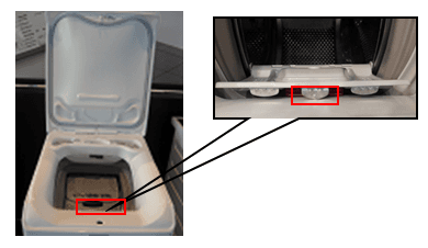 - Toplader ist bei der Einfüllöffnung verkratzt (rote Markierung im Bild unten)