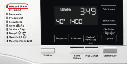 - Wäsche: für Baumwolle und gemischte synthetische Gewebe