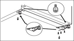 12. Entfernen Sie beide verstellbaren Füße und lösen Sie die Schrauben des unteren Scharniers.