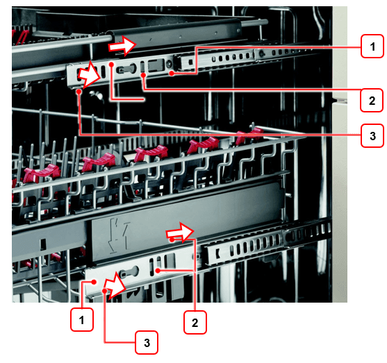 So zerlegen und montieren Sie die mittleren Korbschienen Ihres Geschirrspülers