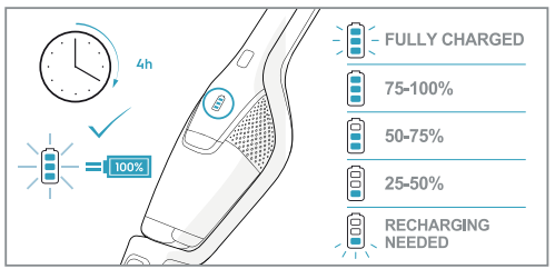 - Laden Sie den Akku des Staubsaugers vollständig auf