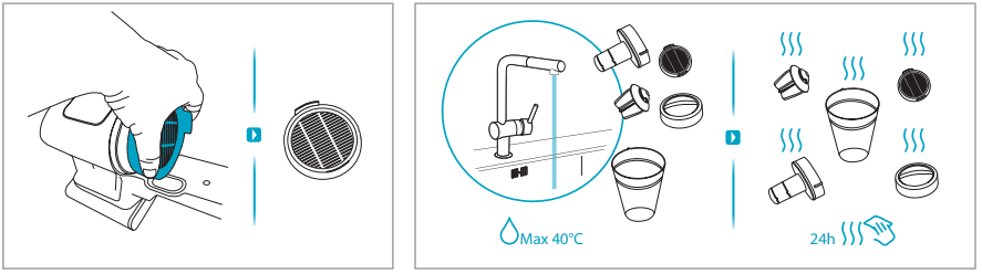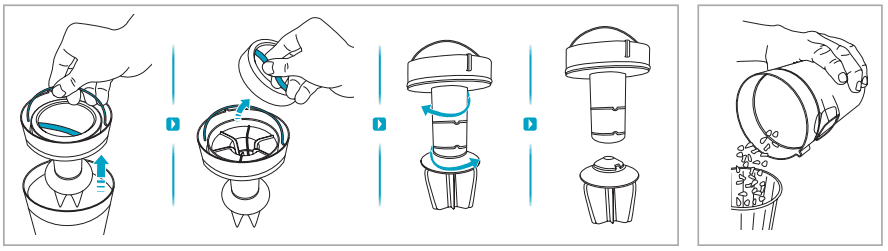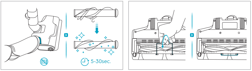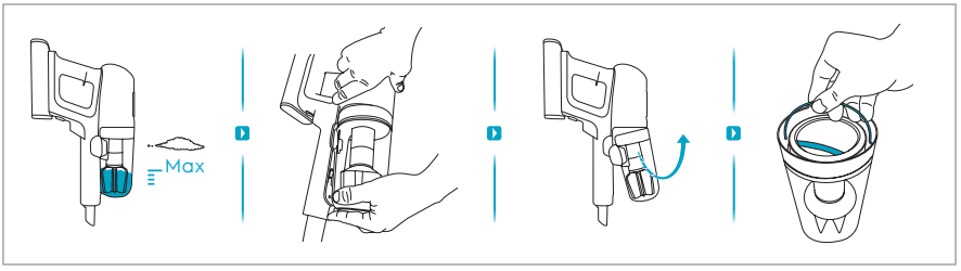 - So leeren/reinigen Sie den Mülleimer und reinigen die Filter in einem Akku-Staubsauger