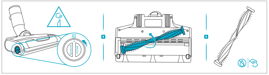 Darüber hinaus wird empfohlen, die Bürstenrolle des Staubsaugers regelmäßig zu überprüfen und alle verfilzten Haare oder Ablagerungen zu entfernen, um eine optimale Leistung sicherzustellen.