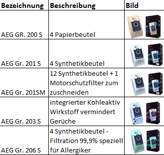 - passende Staubsaugerbeutel für die Modelle AEG VX4, VX6, VX7, VX8, VX82, AB5 oder AB6