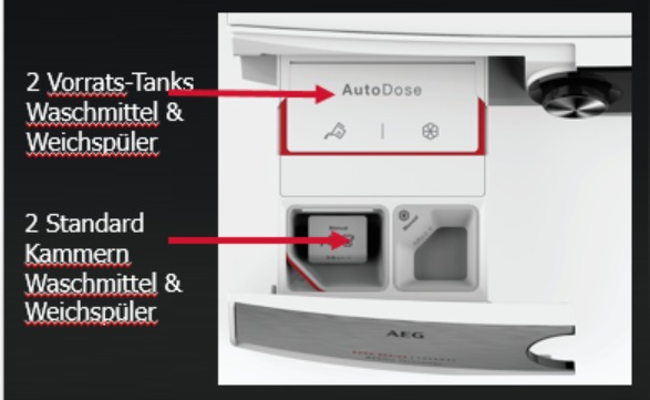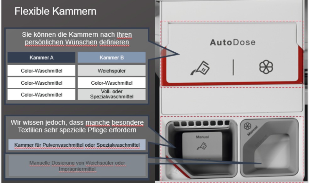 2. Bei der automatischen Dosierung AutoDose kann nur Flüssigwaschmittel und Weichspüler verwendet werden
