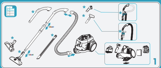 - Nehmen Sie den Schlauch bzw. das Teleskoprohr wie in der Bedienungsanleitung beschrieben ab.