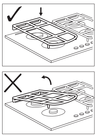 - Um die Oberfläche des Kochfelds zu reinigen, entnehmen Sie die Topfträger.